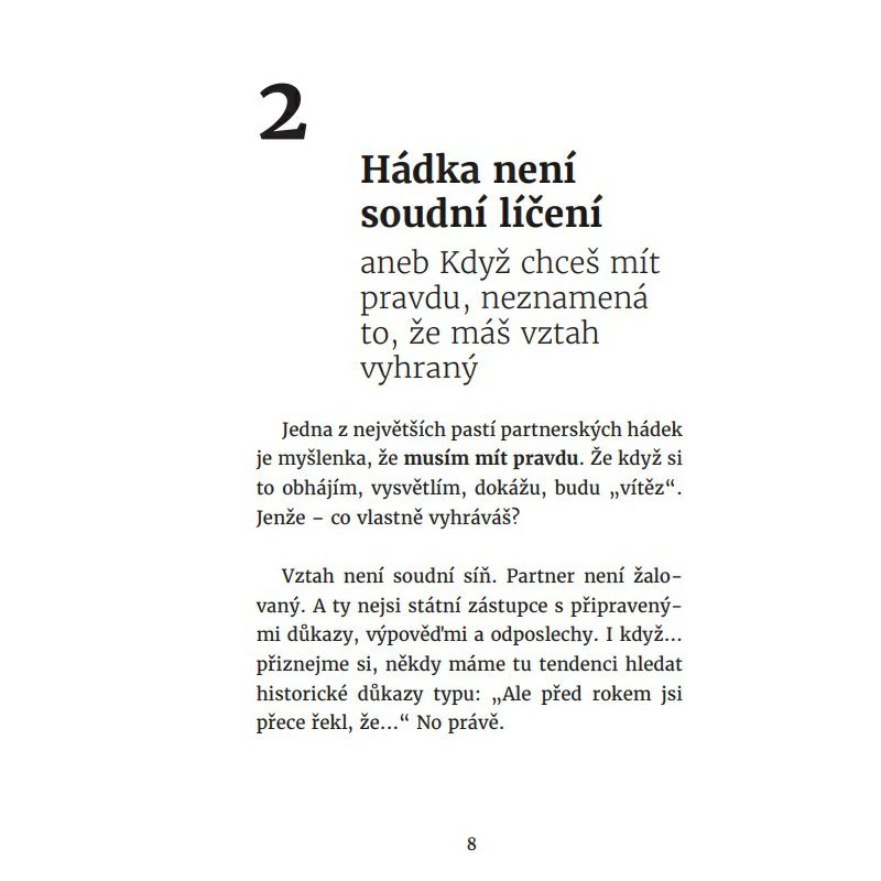 Pravidla hádky – Příručka, jak se pohádat a neztratit lásku. Každý vztah občas zaskřípe. Rozdíl je jen v tom, jestli z hádky uděláte bitevní pole – nebo prostor k porozumění. Tahle kniha vám ukáže, že i bouřky ve vztahu můžou posílit lásku.
