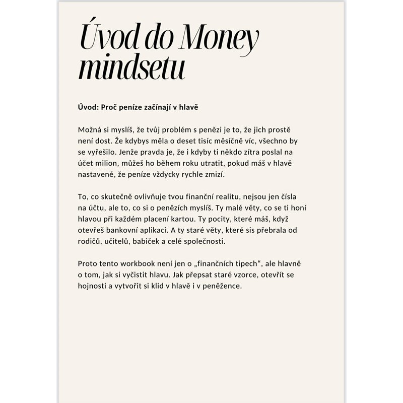 Objev sílu money mindsetu a manifestuj hojnost i klid v hlavě. Workbook s cvičeními, vizualizací a checklistem pro tvůj finanční klid.